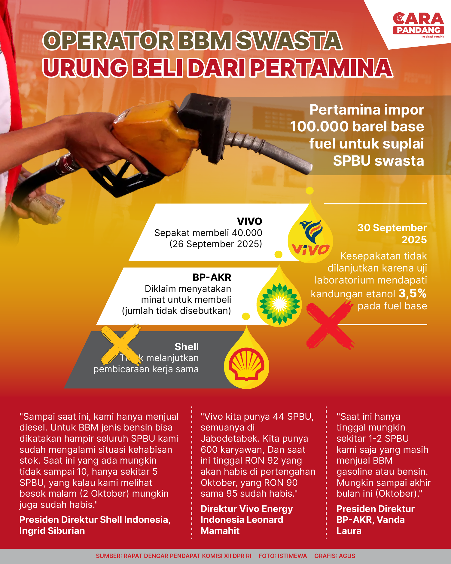 Beranda Infografis Operator BBM Swasta Urung Beli dari Pertamina Infografis Operator BBM Swasta Urung Beli dari Pertamina Penulis Amira Izzati - 05 Oktober 2025 06:31 0 Operator BBM Swasta Urung Beli dari Pertamina Tags Berita Sebelumnya Menkomdigi: PWI Harus Jadi Rumah Nyaman Bagi Wartawan dan Pers Berita Berikutnya Prabowo Sedang Pimpin Perang Besar Lawan Korupsi dan Penjarahan SDA Bangsa LEAVE A REPLY Cancel reply Comment: Please enter your comment! Name:* Please enter your name here Email:* You have entered an incorrect email address! Please enter your email address here Website: Save my name, email, and website in this browser for the next time I comment. Berita Teratas Berita Terkait Berita Terkait